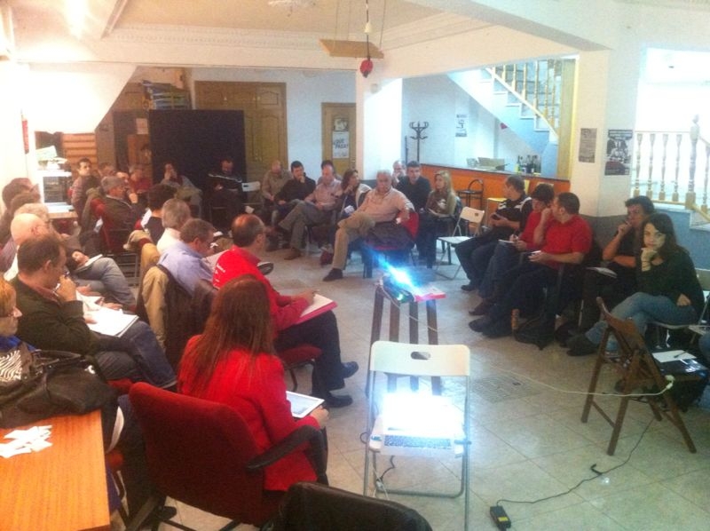 Esta reunión de diversas organizaciones sociales y políticas se inició el pasado 24 de julio, en su I Asamblea, convocada por Izquierda Unida*. De aquella primera asamblea, el grupo inicial salió con el propósito de unir a la izquierda social y política en la lucha contra el neoliberalismo, que nos asola con recortes y pérdida de derechos. De igual modo, se acordó autoconvocarse a partir de la siguiente asamblea. Dichas reuniones generales se han ido sucediendo de forma mensual**, aunque los grupos de trabajo han ido elaborando las propuestas que, finalmente, han sido ratificadas en esta IV Asamblea. Se establecen unos puntos básicos para desarrollar los contenidos programáticos y se acuerda presentar la iniciativa de modo oficial el próximo mes de diciembre.