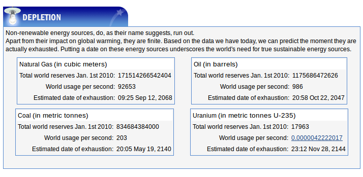 En la tabla se dan las fechas hasta el agotamiento de las distintas fuentes, lo cual es una convención útil para hacerse una idea de cómo irá el agotamiento del recurso en cuestión pero que no se debe de tomar literalmente. Esta fecha de agotamiento es el resultado de dividir las reservas estimadas entre la producción actual, y sumarlo a la fecha actual. Como ven, dice que a ritmos actuales agotaríamos completamente el petróleo para el año 2047, es decir, de aquí 37 años. Hank tuvo probablemente un escalofrío, pues si a ritmo constante -imposible, como sabemos, porque la geología no lo permite- quedaran 37 años quiere decir que el Peak Oil debe ser ya. No es que Hank no entendiese el concepto ni que le restase importancia, pero no acababa de darle credibilidad al sentido de urgencia que yo le imprimo al problema, porque mis referencias no eran los suficientemente “convencionales”, mainstream, y porque además no deja de ser curioso el perfil bajo (downplaying) que se le da al problema en los medios de comunicación y en el debate político. Pero de golpe Hank ha visto que incluso los medios e instituciones dan una información inquietante, aunque si no entiendes que la producción no puede ser constante el horizonte de 2047 puede ser tranquilizador para el lector despistado. Cabe añadir, además, que el horizonte del gas no es mucho más esperanzador (2068), el del carbón parece más tranquilizador (2140) pero teniendo en cuenta su ritmo más lento de extracción en realidad llegaremos al pico el año que viene en cuanto a su energía, y hacia el 2025 en cuanto a su volumen, y con respecto al uranio (2144) el volumen de reservas está groseramente exagerado por razones estratégicas, como ya discutimos. En suma, que estos datos son consistentes con la llegada de la Gran Escasez, el Peak Everything.