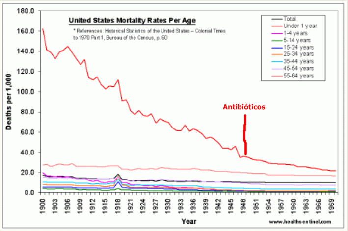 Mortalidad en Estados Unidos entre 1900 y 1970 por edades: