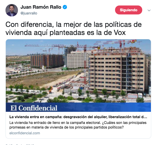 Hoy comenzamos analizando los programas económicos de los partidos de derechas. ¿Qué diferencias hay entre PP, Ciudadanos y Vox? ¿Cuáles son sus similitudes? Y, muy importante: ¿qué viabilidad y qué efectos tendrían en la economía española? Como segundo tema, hablamos sobre el último informe sobre vivienda del Banco de España. Sorprendentemente, coincide en muchos aspectos con nuestro análisis desde hace años. ¿Nos estaremos volviendo mainstream? ¿O quizás es que la verdad acaba cayendo por su propio peso? Con Francisco Guillén, Juan Carlos Cabrero y José Basauri. Conduce Juan Carlos Barba.