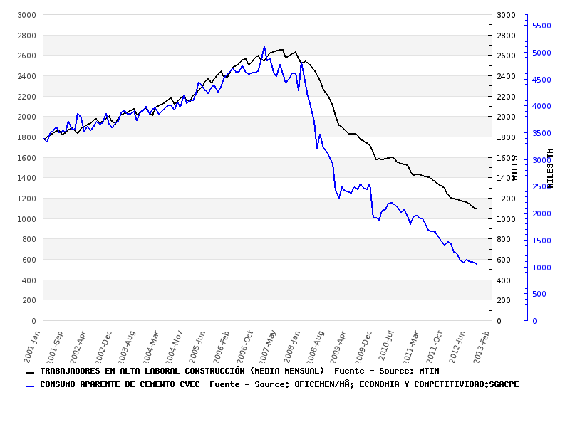 Desafortunadamente el dato que mejor correlación tiene con el empleo en la construcción (consumo de cemento) es lo que nos está indicando.