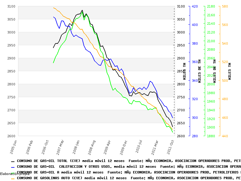 Evolución desde 2007 hasta octubre, gráficos suavizados. Ya tenemos algunos datos de noviembre, y la tendencia ha empeorado aún más.