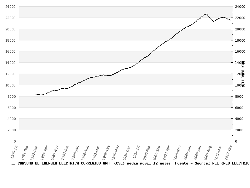 Continúa el declive a tasas superiores al 2%, obsérvese el drástico cambio de tendencia respecto a la que históricamente se ha visto en España.