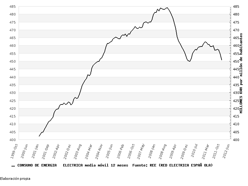 Consumo bruto total. Se aprecia con claridad la recaída del éste.