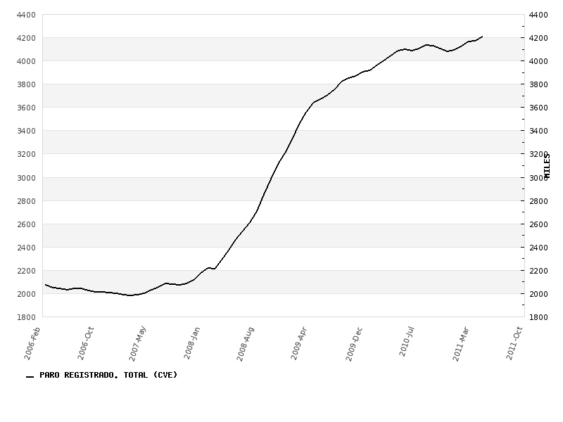 Desde principios de año el aumento sube hasta 127.900 desempleados más. Como se viene avisando desde aquí, la estabilización en el número de parados que se vio en el segundo semestre del pasado año no era sino un efecto retardado de las medidas de estímulo que se truncaron de forma súbita con la crisis de deuda de mayo de 2010. Ahora estamos asistiendo a los efectos sobre el empleo del nuevo desplome de la economía que comenzó hace 10 meses.