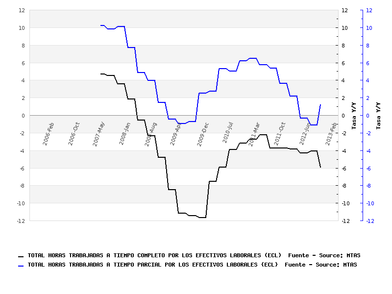 Asumiendo que la jornada media en trabajadores a tiempo parcial es aproximadamente un 50% del total, y que buena parte de ellos desearía trabajar a jornada completa, se puede realizar una estimación de la tasa de paro corregida por este factor. Ésta sería del 27,5% (contando 0,5 desempleados por cada empleado a tiempo parcial que desearía trabajar a jornada completa). Si además contabilizamos los aproximadamente 1,2 millones de personas que trabajarían pero que no están disponibles o buscando activamente empleo en estos momentos, la tasa de paro real sería entonces del 32,7%, unas cifras sólo vistas en países como Alemania en vísperas de la llegada del régimen nazi y en muy pocas ocasiones más (y muy superiores a las de la Gran Depresión en EEUU). El drama humano de enormes proporciones que se encuentra detrás de estas cifras debería hacer reflexionar a los dirigentes europeos sobre la aplicación de más medidas que, de forma inevitable, conducirán a que el desempleo aumente todavía más y con él el sufrimiento de nuestra población.