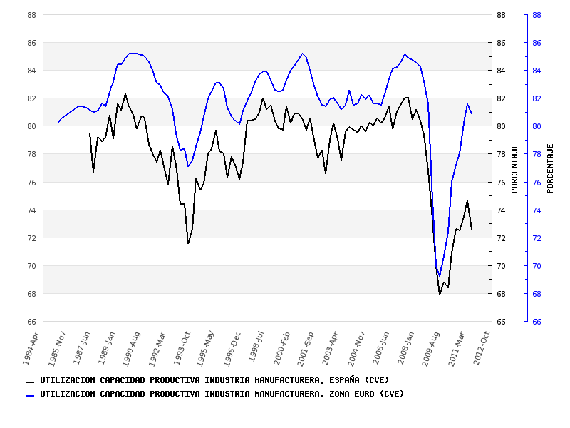 Ayer conocimos los datos de utilización de la capacidad productiva del segundo trimestre, que corroboran los del PMI. Parece claro que la industria, por desgracia, y a pesar de la excelente evolución de las exportaciones, se suma a la construcción y a los servicios en su tendencia recesiva. Sólo el turismo se libra.