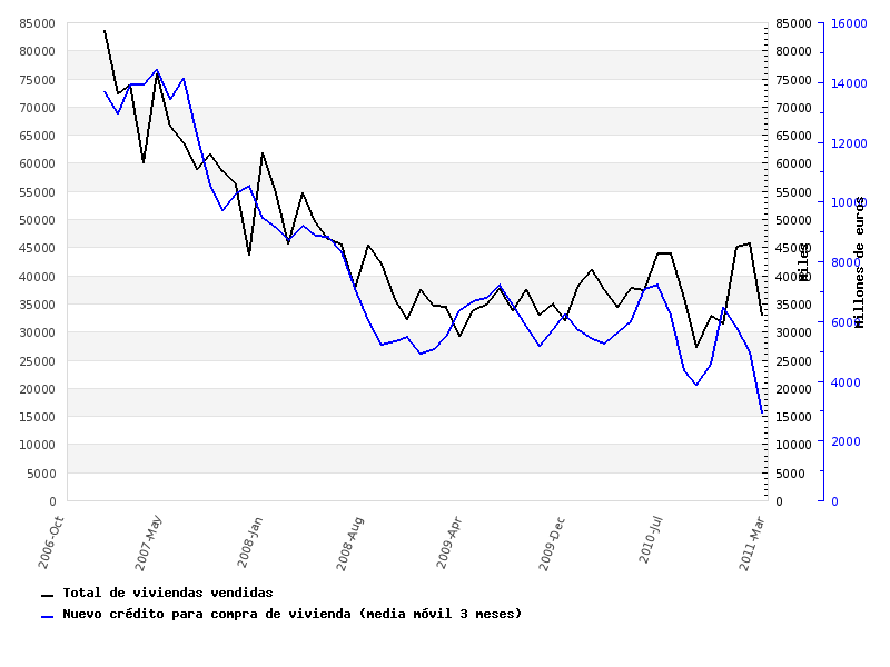 Se aprecia cómo el gráfico del crédito anticipa nuevas caídas en las compraventas.