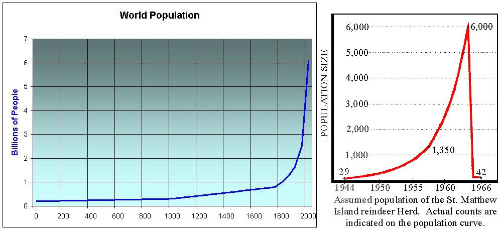 Y aquí la curva de población humana comparada con la de los ciervos de la isla de Matthew.