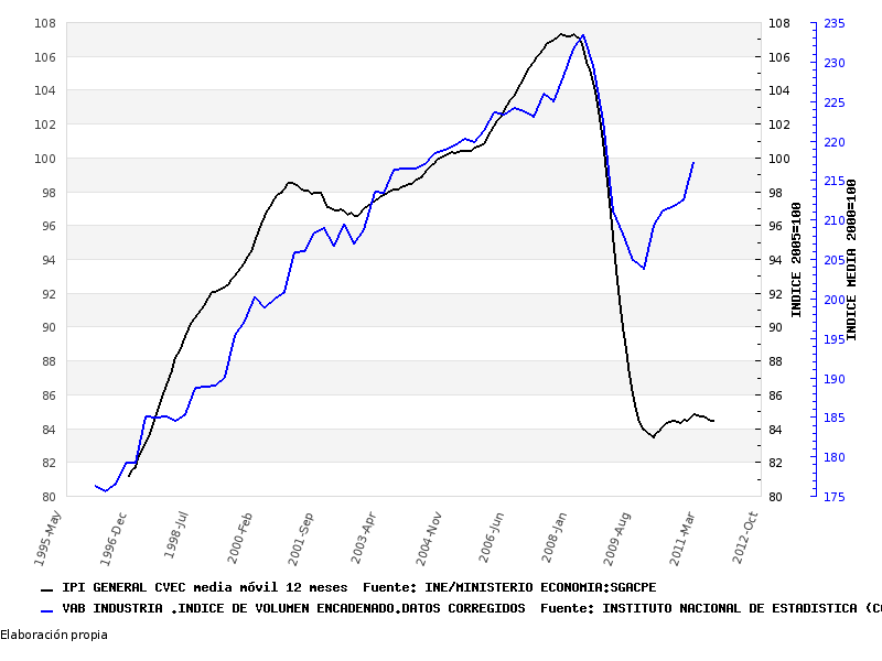 PIB industria (INE) vs. índice de producción industrial (INE)